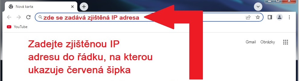 - Zjištěnou IPv4 adresu zadejte do adresního řádku URL libovolného prohlížeče (NIKOLIV do vyhledávače Google, Seznam, atd.) a stiskněte klávesu ENTER