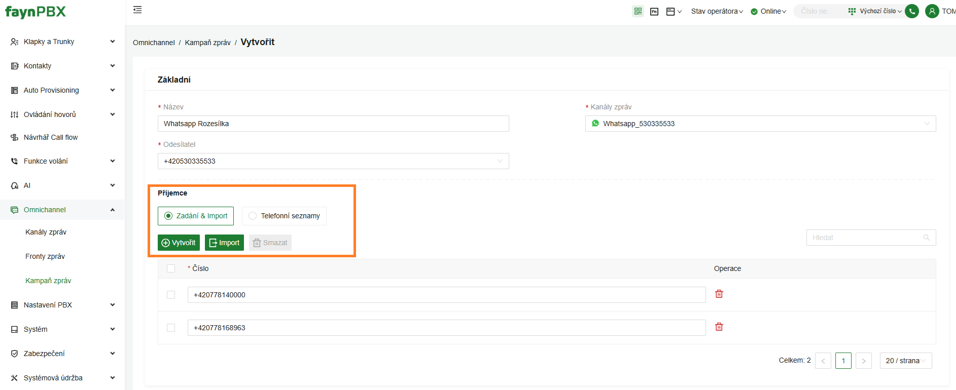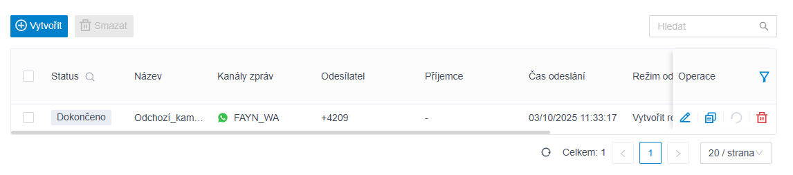 Odchozí Whatsapp kampaně