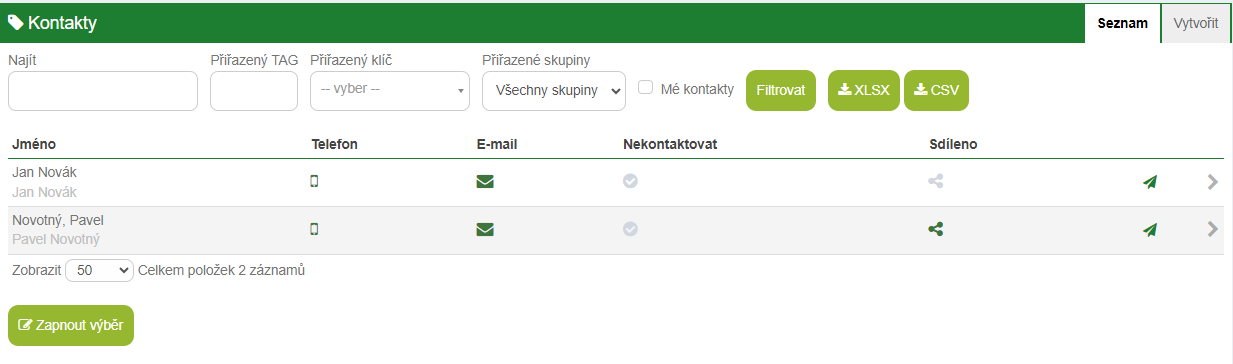 - pro snadnější identifikaci, lze každému kontaktu přiřadit libovolný TAG (dle TAGu lze poté seznam filtrovat)