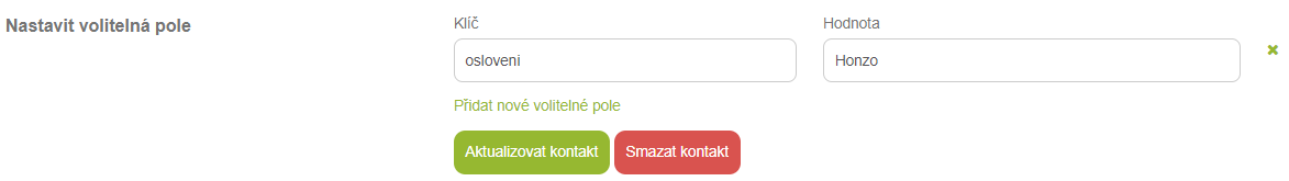 Proměnné jsou údaje spojené s uloženým kontaktem. Lze je využít dvěma způsoby: